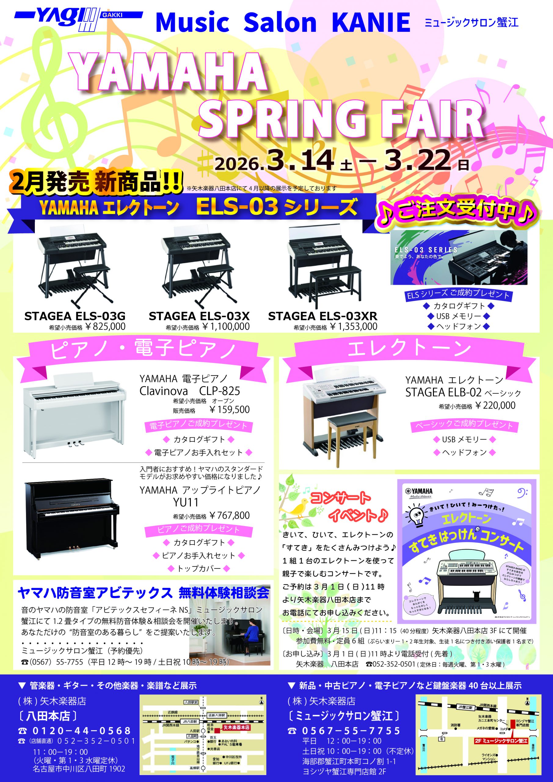 3月14日㈯~3月22日㈰にヤマハ ピアノ&エレクトーン スプリングフェアを開催します!
